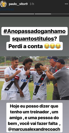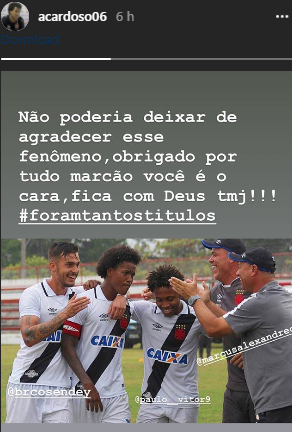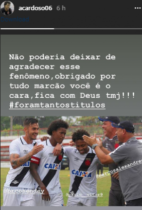 Jogadores oriundos da base do Vasco homenageiam Marcus Alexandre, que está deixando o clube