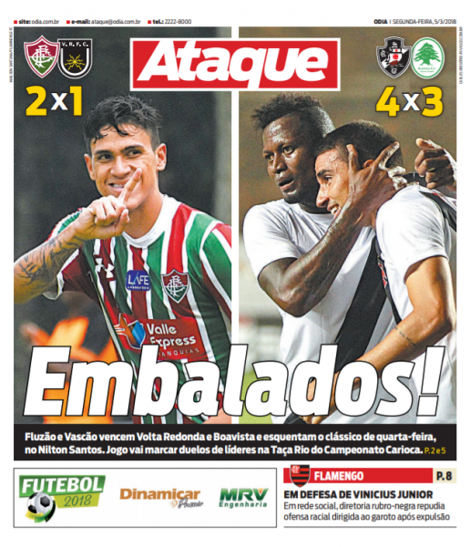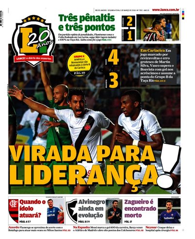 Veja como a imprensa carioca destacou a vitória do Vasco sobre o Boavista
