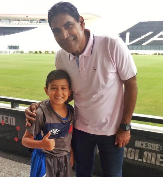 O goleiro Acácio esteve em São Januário e foi tietado pelo pequeno Vitinho, destaque das categorias iniciais do Vasco.