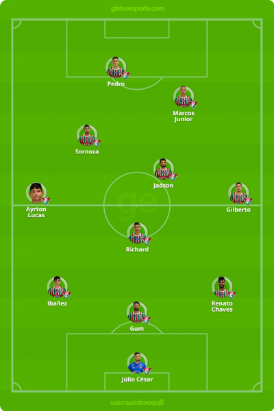 O Tricolor vai para o clássico com força máxima. Desfalque na partida anterior em razão do desgaste físico, o artilheiro tricolor na temporada Marcos Jr. treinou normalmente nesta semana e retoma o lugar de Robinho. O restante do time é o mesmo que encarou o Voltaço.