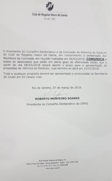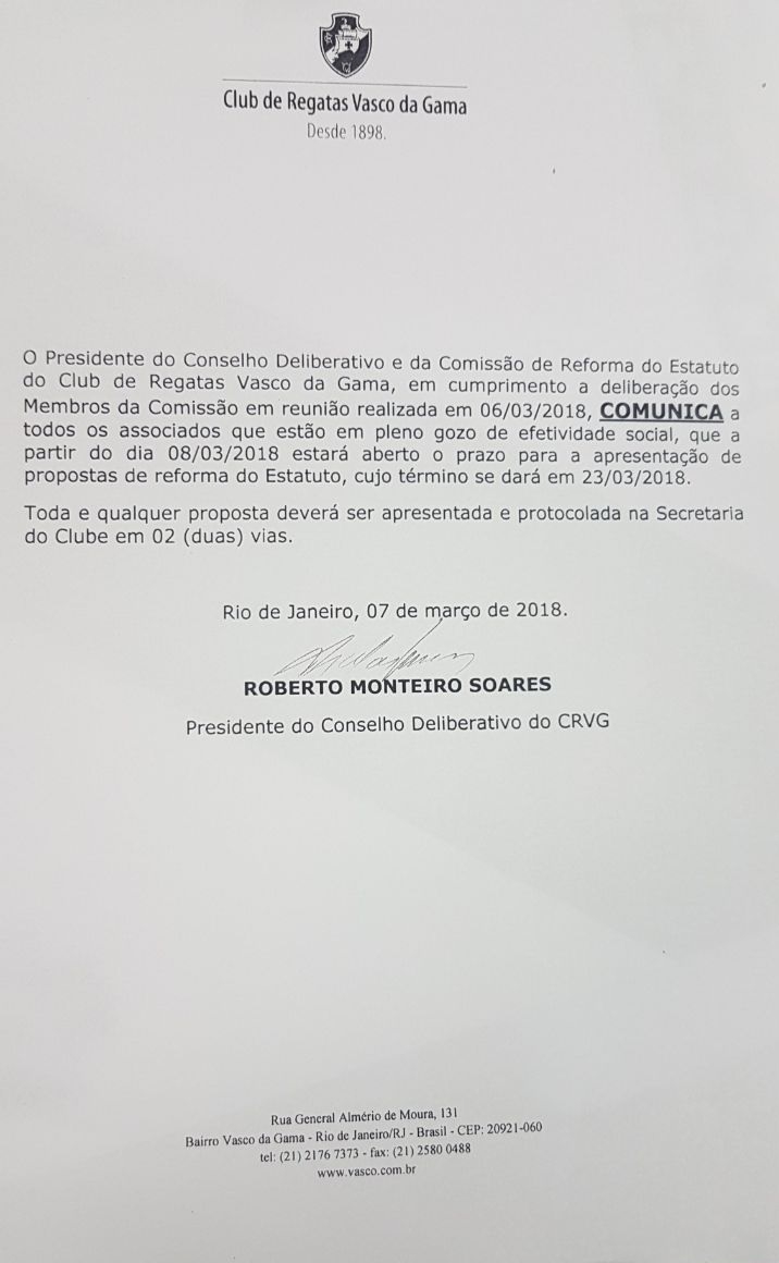 03/03/18 - Conheça o regulamento do recadastramento obrigatório de sócios do Vasco