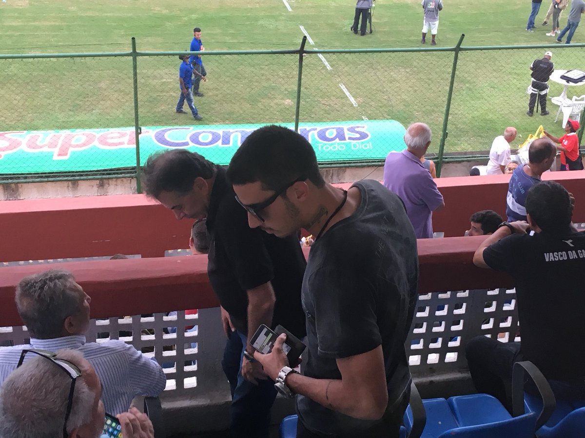 Thiago Galhardo, suspenso, acompanha o jogo da área reservada à diretoria do Vasco. #trmoca
