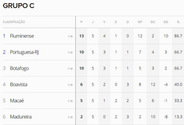 Terminada a 5ª e última rodada da 1ª fase da Taça Rio, o Vasco, que derrotou o Madureira por 3 a 1, subiu da 2ª para a 1ª colocação do Grupo B, seguindo dentro da zona de classificação às semifinais.