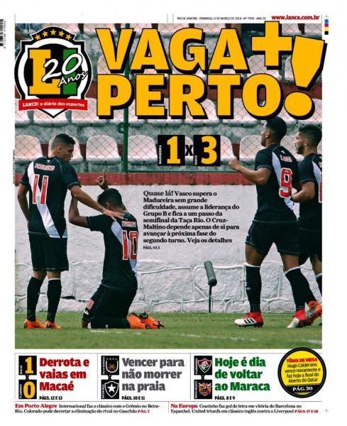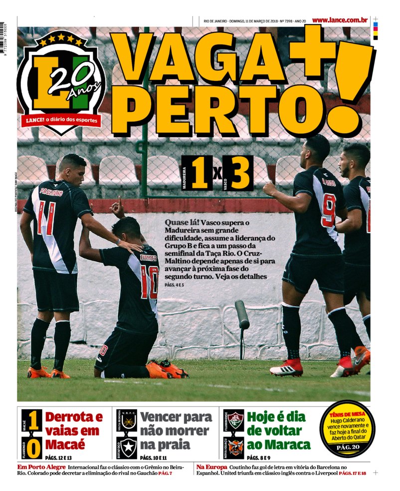 Veja como a imprensa carioca destacou a vitória do Vasco sobre o Madureira