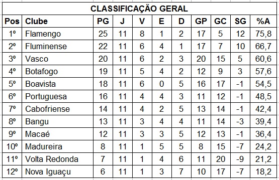 Fonte: NETVASCO (texto, classificação geral), GloboEsporte.com (classificação, resultados), Twitter FFERJ (próximos jogos)