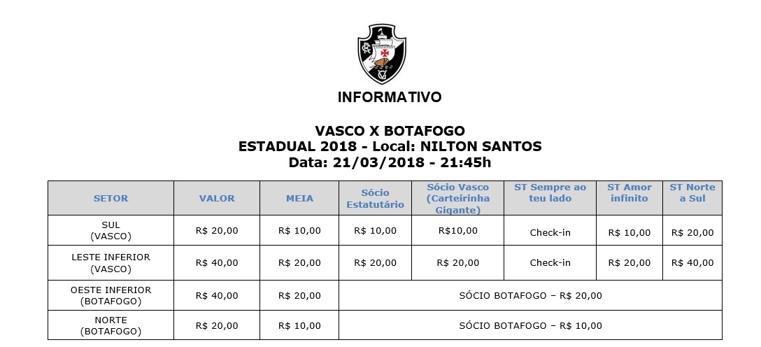 2. SÓCIO ESTATUTÁRIO DO VASCO – SÓCIO DO CLUBE terá direito a meia-entrada ao comprar seu ingresso nas bilheterias em São Januário.