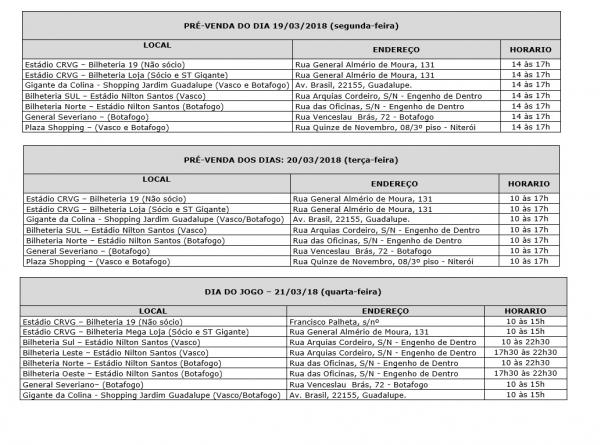 1. SÓCIO TORCEDOR GIGANTE – a venda de ingressos para os sócios-torcedores será feita exclusivamente NA BILHETERIA AO LADO DA MEGALOJA DE SÃO JANUÁRIO.
