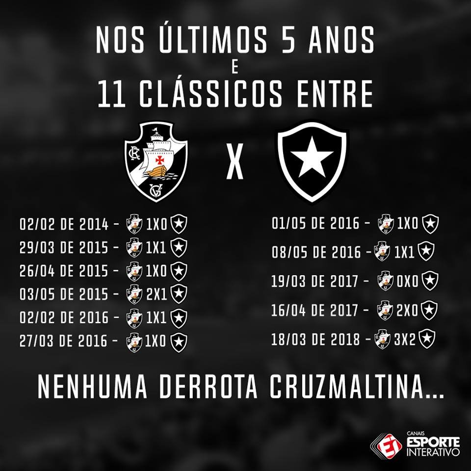 Em 11 jogos nos últimos 5 anos pelo Estadual Vasco não perdeu para o Botafogo
