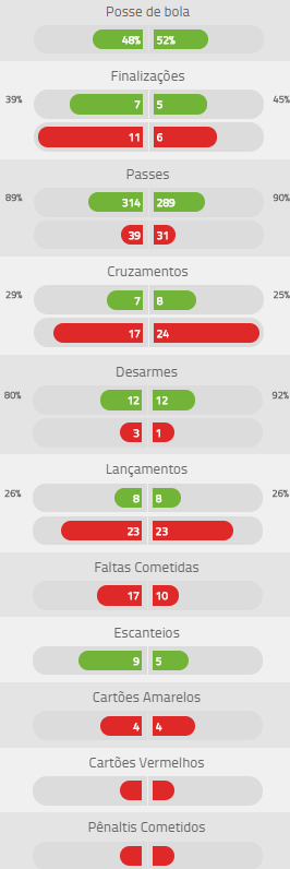 Confira estatísticas de Vasco 2 x 3 Botafogo