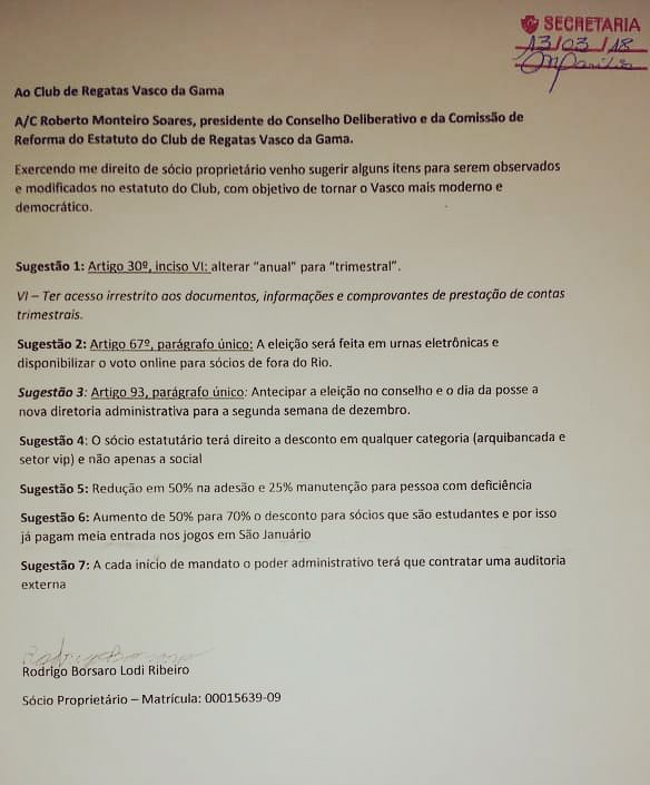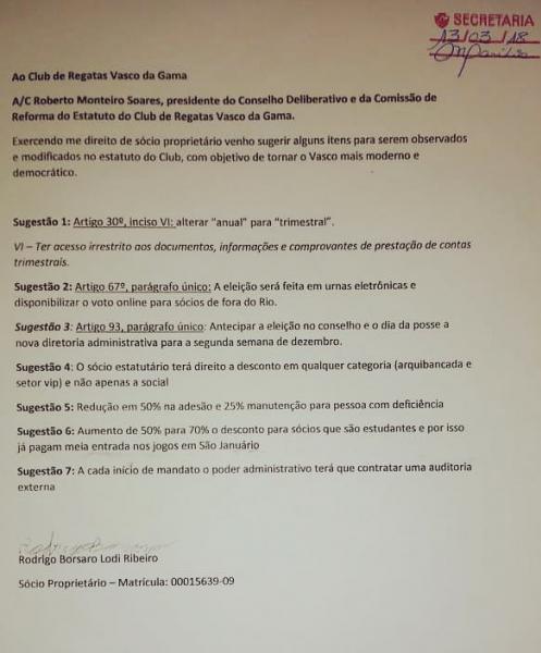 Outro grupo que havia protocolado propostas de alteração do Estatuto foi o 'Juventude Vascaína'. Entre as principais: