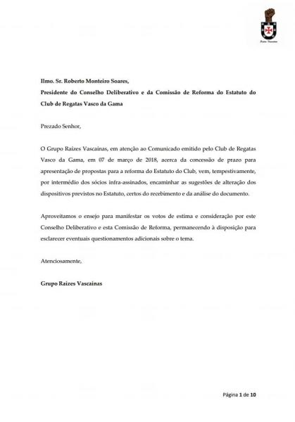 O grupo Raízes Vascaínas protocolou nessa sexta-feira, 23/03, na secretaria do Vasco da Gama, proposta de alteração do estatuto do Club. Seguindo os preceitos do grupo, a proposta visa a democratização e popularização do estatuto e quadro social de nosso clube.