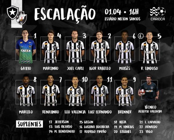 Veja a escalação do Botafogo para o jogo contra o Vasco