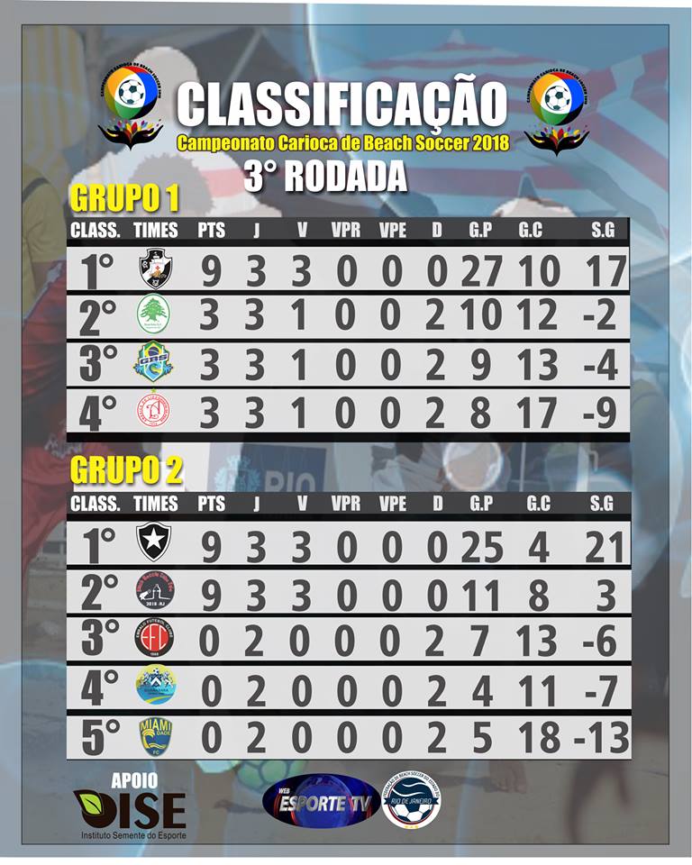 31/03/18 - Beach Soccer: Pelo Carioca, Vasco enfrenta o Miami Dade neste sábado às 15h45 com internet