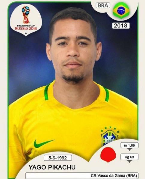 Os dois gols de Yago Pikachu contra o Botafogo no primeiro jogo da final do Estadual, na vitória vascaína por 3 a 2, no último domingo, renderam uma infinidade de memes ao lateral-direito-artilheiro. Uma delas pode ser vista abaixo: Pikachu virou figurinha do álbum da Copa do Mundo Rússia 2018.