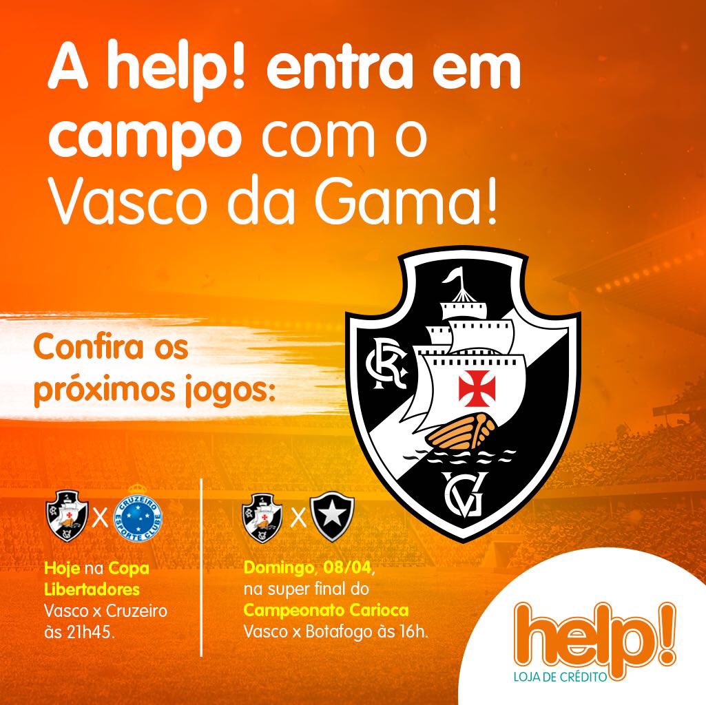 Loja de crédido help!, do grupo BMG, anuncia parceria com o Vasco em suas redes sociais