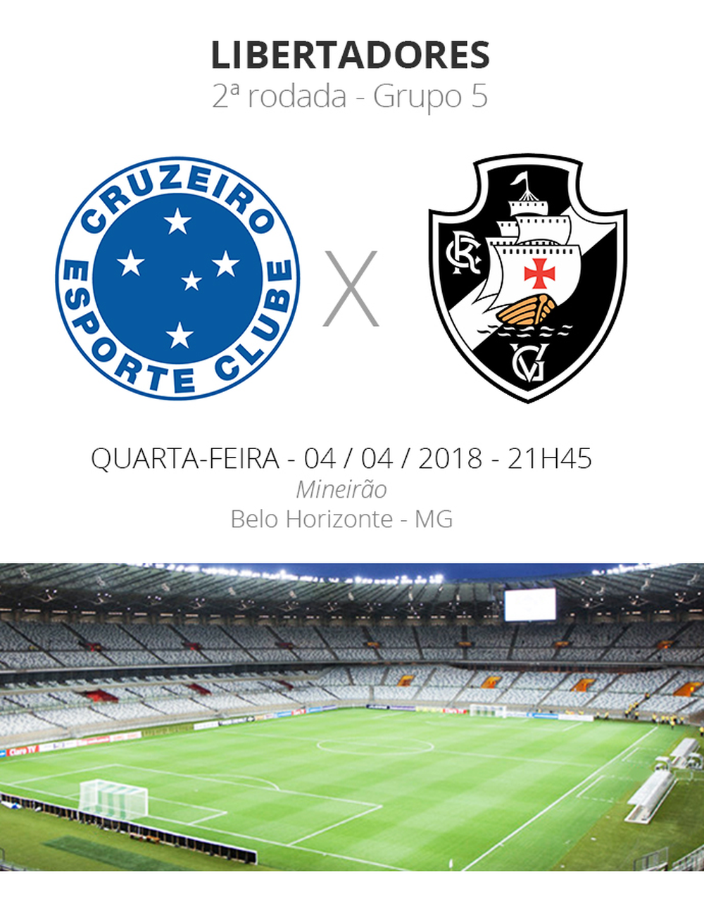 Tanto o Cruzeiro quanto o Vasco iniciaram a Taça Libertadores com derrota. O time mineiro, perdeu para o Racing, na Argentina, enquanto a equipe carioca foi batida pela Universidad de Chile, no Rio de Janeiro. Agora, na segunda rodada da competição, ambos os clubes vão em busca da vitória e, consequentemente, dos primeiros pontos no Grupo 5. O duelo será nesta quarta-feira, às 21h45 (de Brasília), no Mineirão.