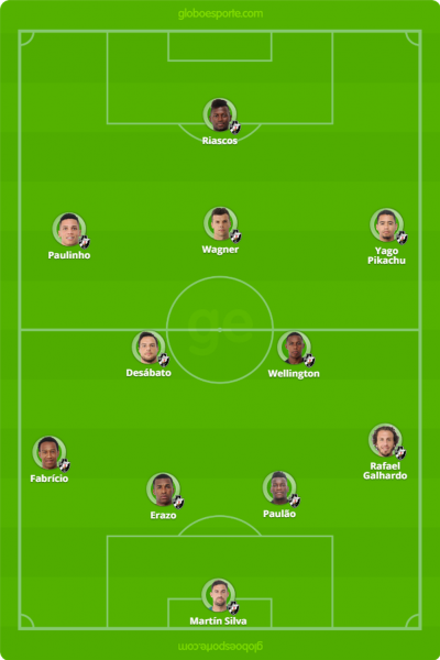 Sem Giovanni Augusto, a equipe terá ao menos uma alteração em relação ao jogo contra o Botafogo, no último domingo. A tendência é que Paulinho, já em melhores condições físicas, volte a ser titular. O restante do time provavelmente será mantido, inclusive a dupla de zaga Paulão e Erazo, que tem sido alvo de críticas por causa da quantidade grande de gols sofridos.