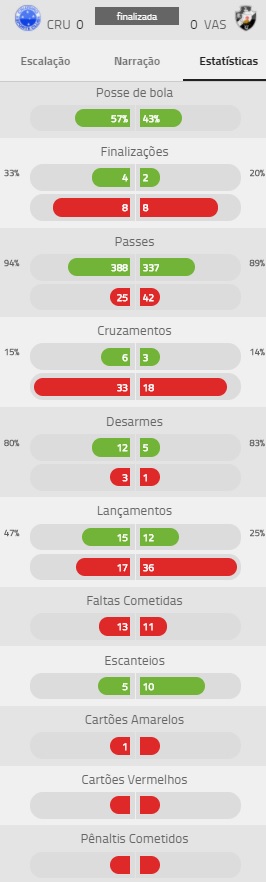 Confira estatísticas de Cruzeiro 0 x 0 Vasco