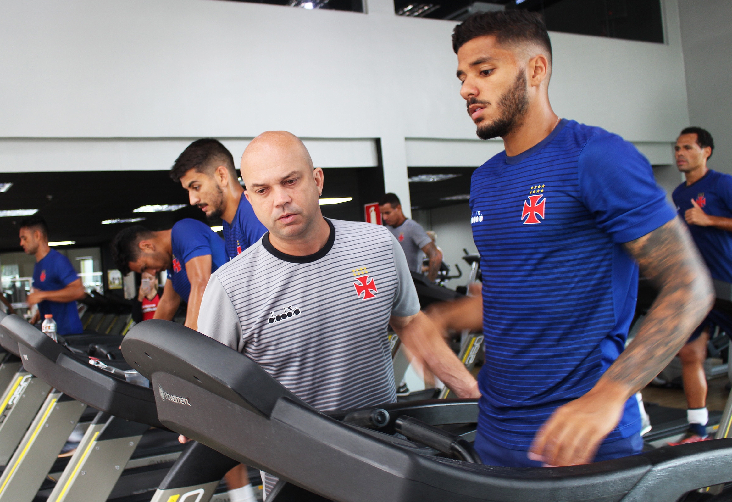 Jogadores do Vasco fizeram atividades na academia de hotel em Belo Horizonte nesta 5ª-feira