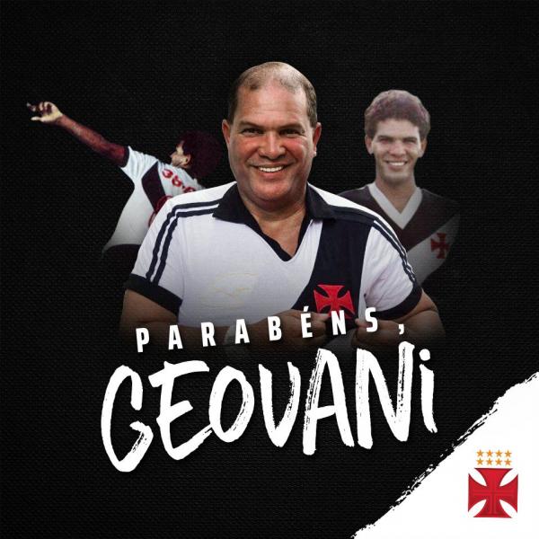 Via Twitter, Vasco parabeniza Geovani pelo seu aniversário nesta 6ª-feira