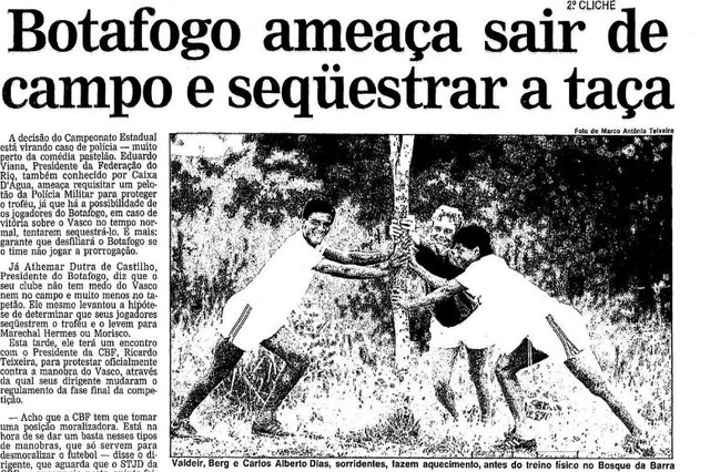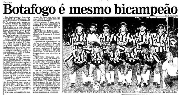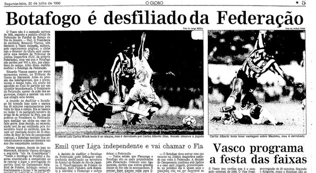 29/7/1990 – Botafogo vence no tempo normal e comemora título. Vasco e juiz esperam pela prorrogação, que Alvinegro recusa a disputar. Cruz-Maltinos festejam título. Federação do Rio desfilia Bota da entidade por ter "abandonado campo".