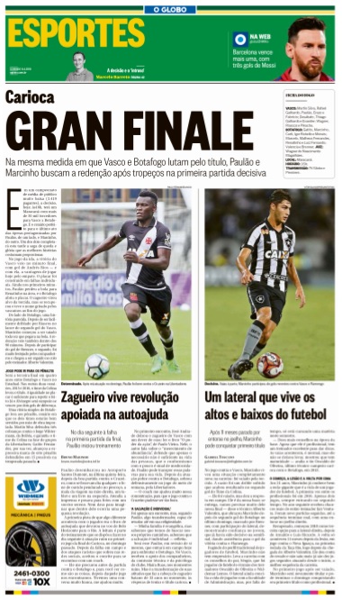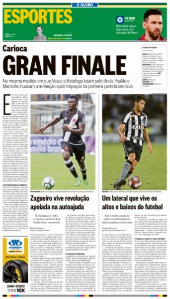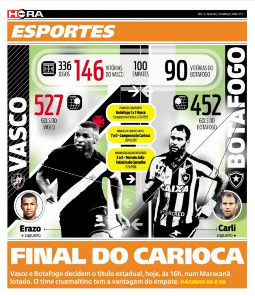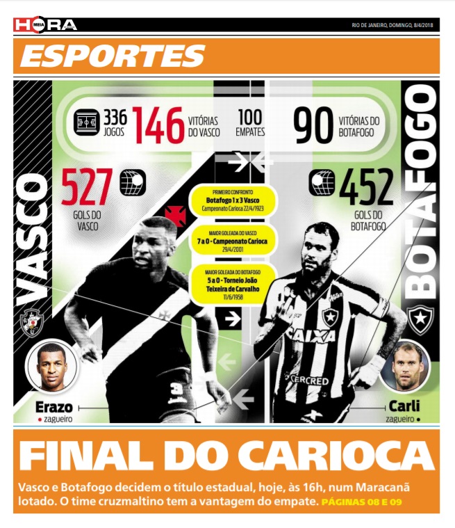 Veja como a imprensa do Rio de Janeiro destaca a finalíssima do Estadual, neste domingo, entre Vasco e Botafogo: