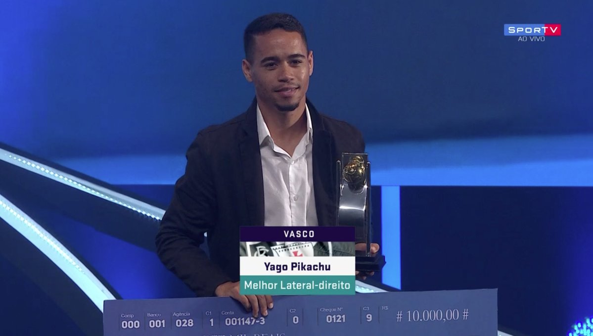 Yago Pikachu recebe prêmio de melhor lateral-direito do Estadual; veja foto