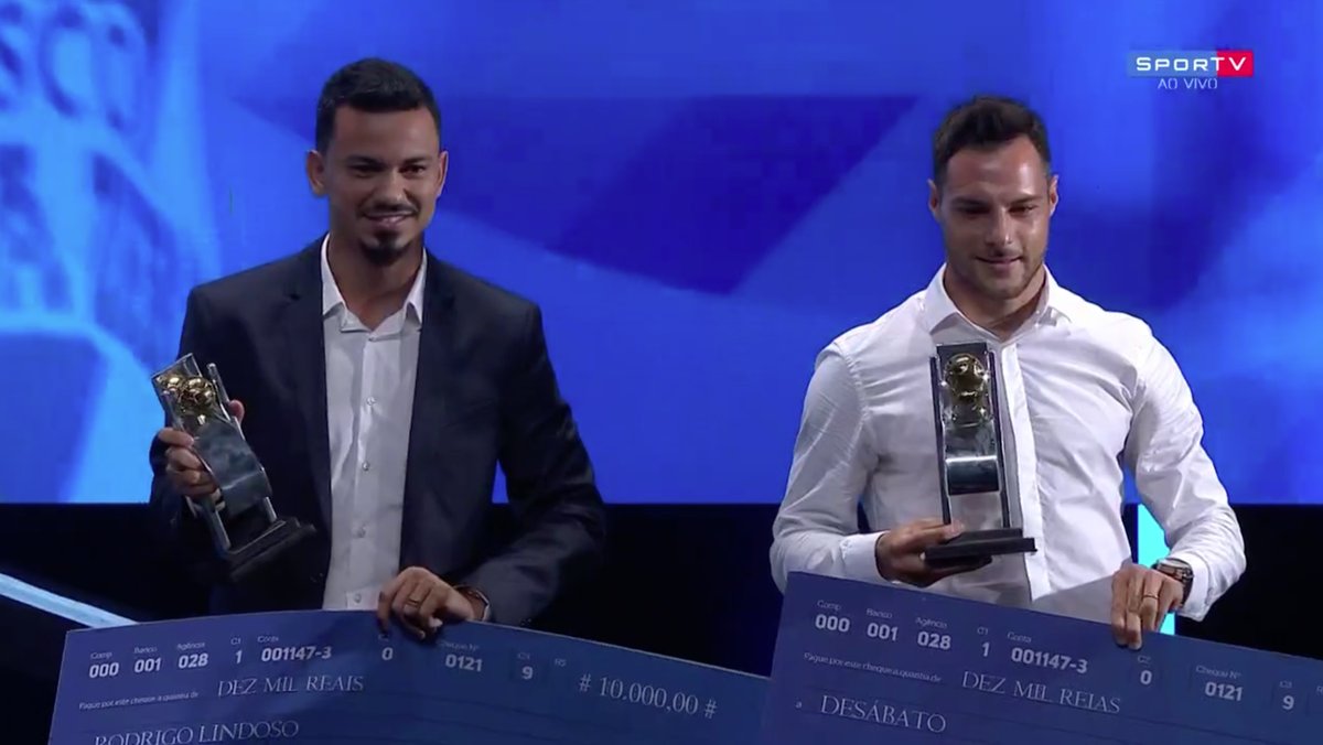 Eleito um dos melhores volantes do Estadual, Desábato recebe prêmio; veja foto