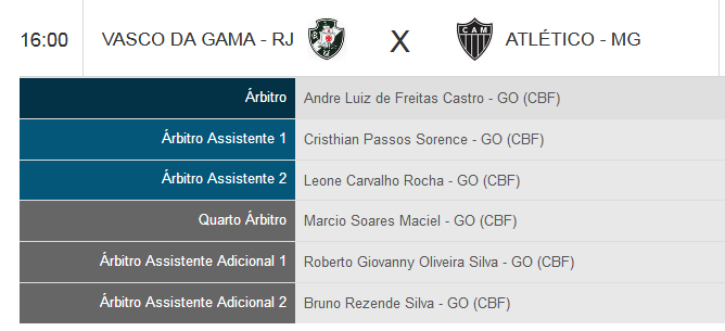 André Luis de Freitas Castro (GO) apita Vasco x Atlético-MG no domingo, em São Januário. #FutGloboRadio