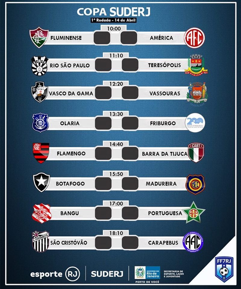 O time de Futebol 7 do Vasco da Gama estreia na Copa SUDERJ nesse sábado (14/04), às 12:20, contra o Vassouras, na Arena Akxe, na Barra da Tijuca. A equipe do técnico Fialho vai a campo com: Caio, Daba, Wruck, Paulinho, Wesley, Chico e Leno.