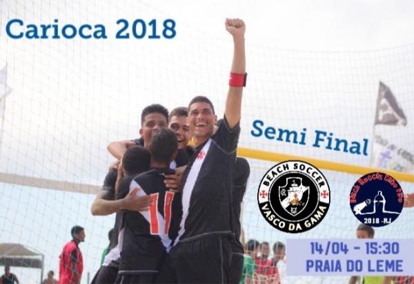 O Vasco Beach Soccer disputará nesse sábado (14/04), às 15:30hs, na praia do Leme, a semifinal do Campeonato Carioca contra o Cabo Frio. O Cruzmaltino é o atual Tricampeão e terá pela frente a forte equipe da Região dos Lagos. Se passar pelo adversário, o time de São Januário estará na final no domingo (15/04), às 11:00hs, no mesmo local.