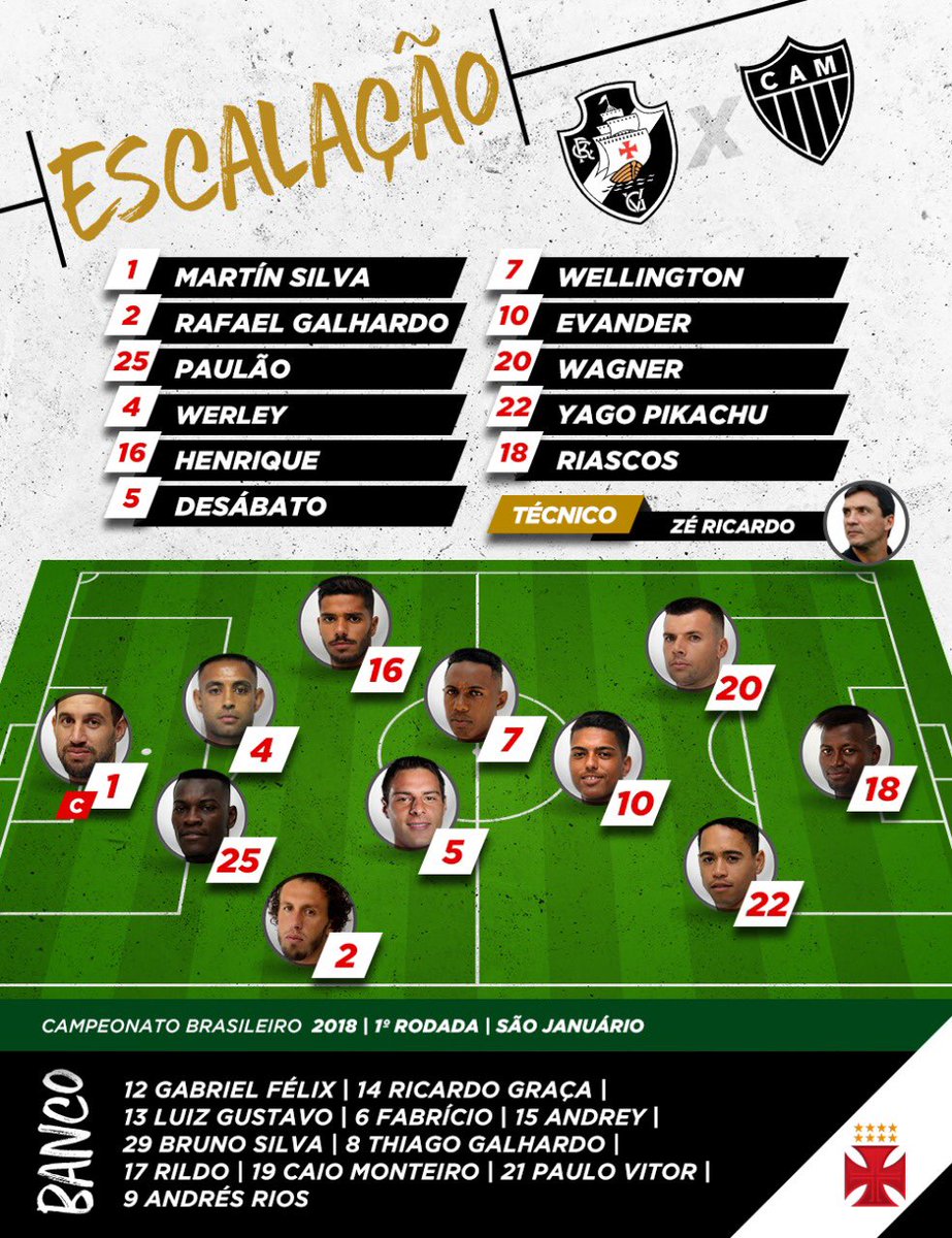 Confira a escalação do Vasco para a estreia do Brasileiro; Evander é titular e Rildo é opção no banco