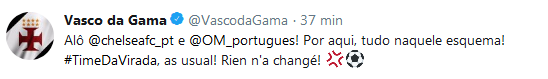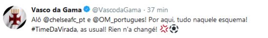 Em rede social, Vasco manda recado para o Chelsea e para o Olympique de Marselha
