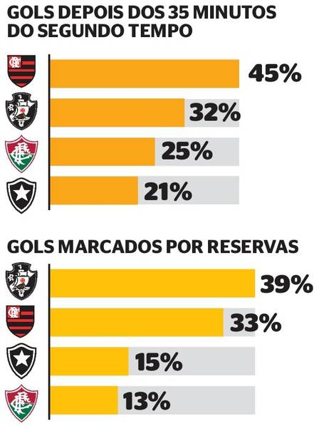 Ainda assim, ter pernas para correr atrás do resultado mesmo tão próximo do apito final não é o bastante. O Vasco é o time do Rio com o banco mais efetivo da temporada. Nada menos que 39% dos gols marcados pelo Cruz-Maltino foram de autoria de jogadores que entraram no decorrer das partidas. O mérito, neste caso, é compartilhado. Os reservas atravessam boa fase e Zé Ricardo tem acertado nas mudanças.