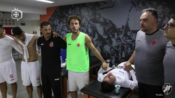 Imagem de Thiago Galhardo participando deitado de corrente no vestiário viraliza