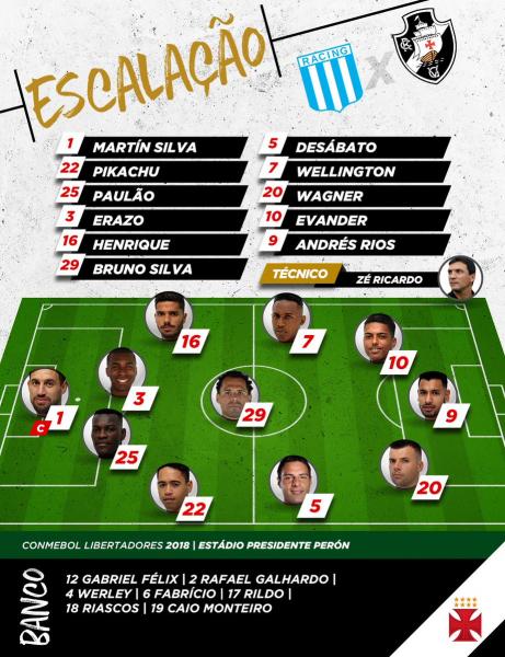 04/04/18 - Confira a escalação do Vasco; Henrique e Bruno Silva são as novidades no banco