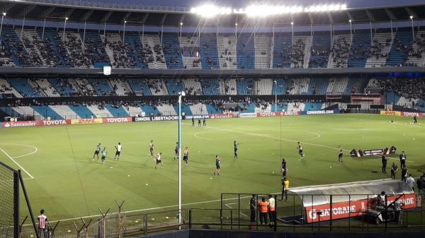 Jogadores do Vasco se aquecem neste momento; veja foto