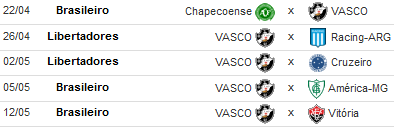 Confira os próximos jogos do Vasco: