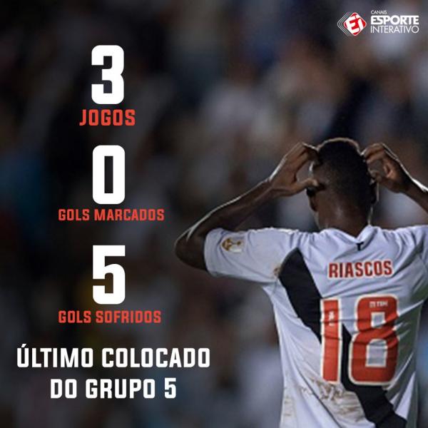 Em 3 jogos na fase de grupos da Libertadores, Vasco sofreu 5 gols e não marcou nenhum