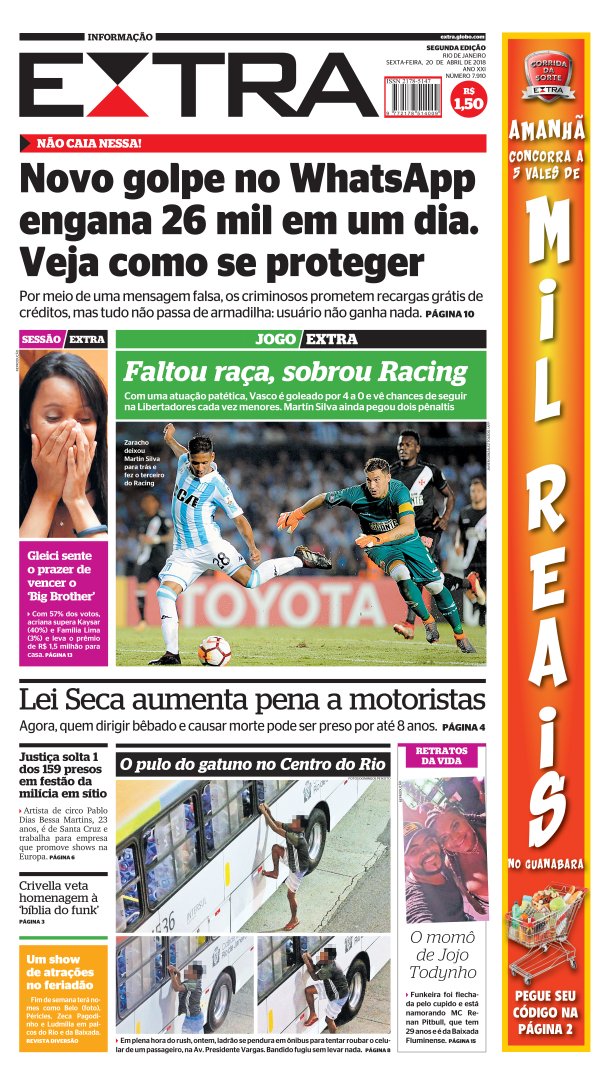 Veja como a imprensa destacou a derrota do Vasco para o Racing na Libertadores