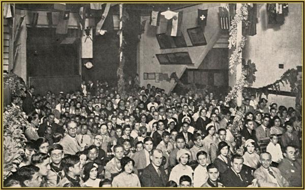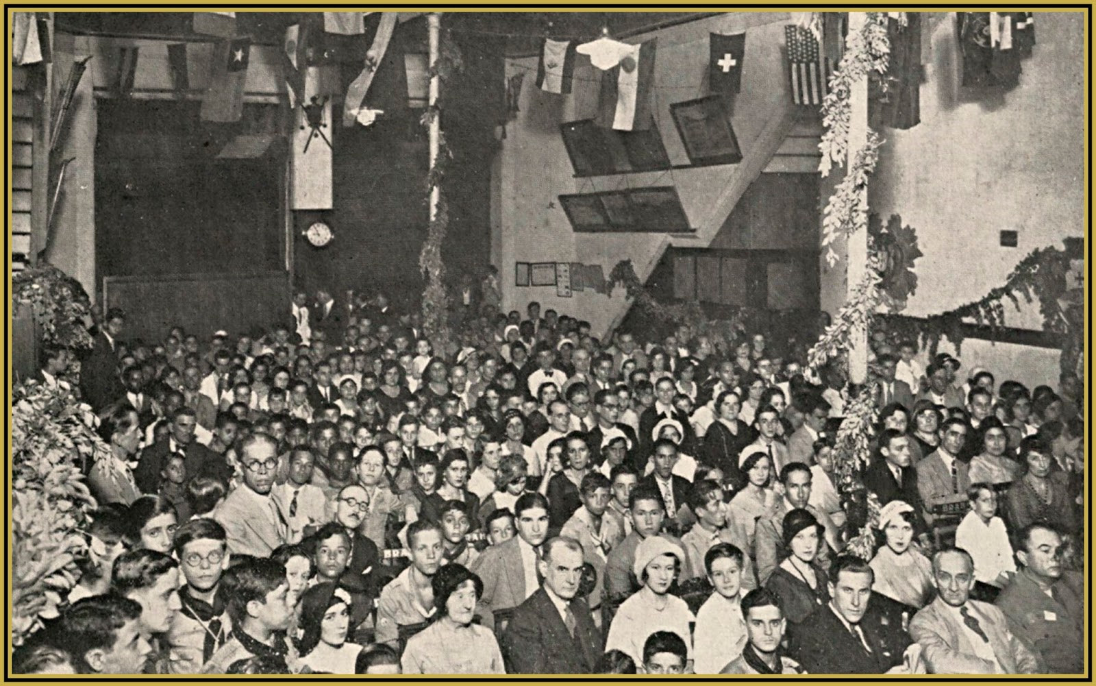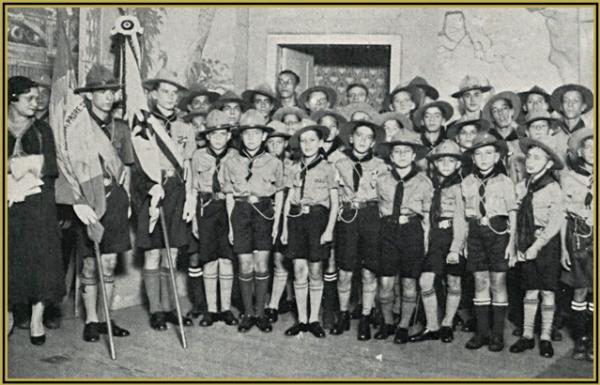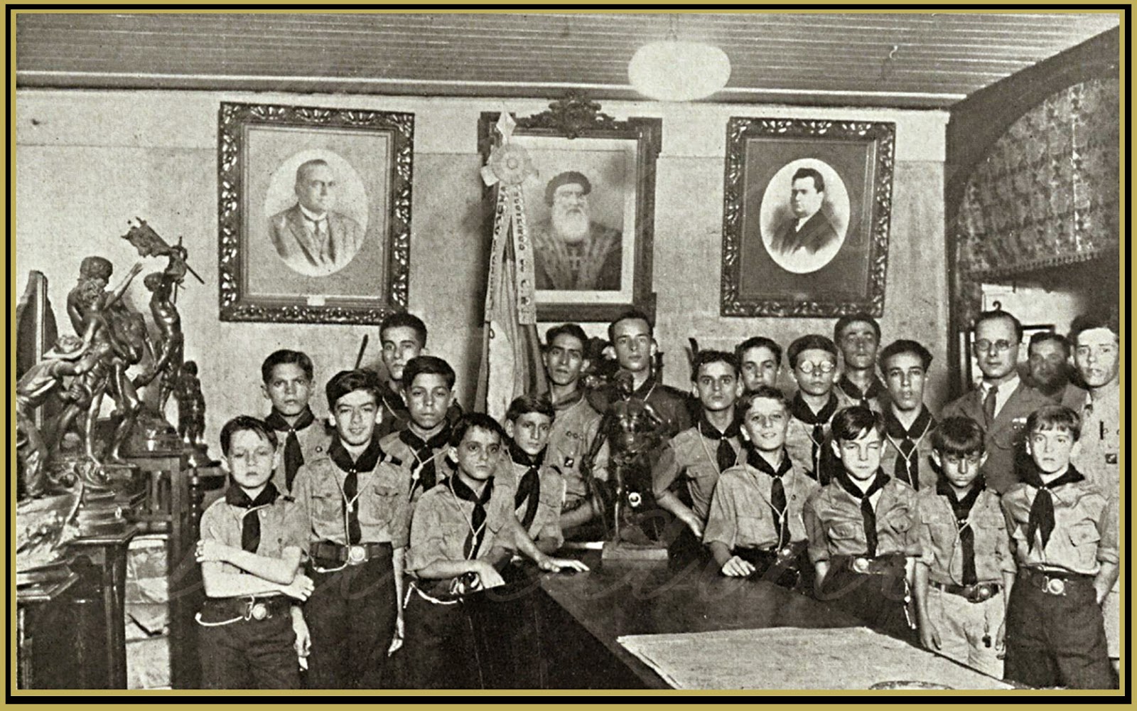 Aqui temos os jovens escoteiros vascaínos em homenagem a São Jorge, comemorando o seu 6.º aniversário de fundação no dia 23 de abril de 1932, realizado no mezanino da histórica sede social da rua Santa Luzia.