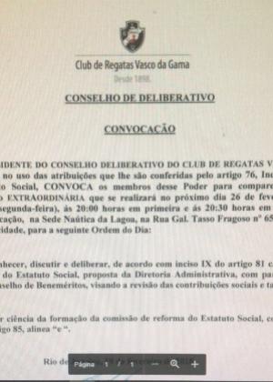 A convocação foi uma obrigação a exercer do presidente do Conselho, Roberto Monteiro, baseado no estatuto do clube, que em seu artigo 76 prevê reuniões sempre que haja requerimentos com as assinaturas de pelo menos 1/5 dos conselheiros. No caso, 60 membros de oposição protocolaram o documento.