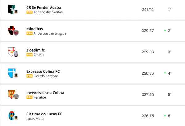 21/11/17 - Cartola FC: Confira a classificação da Liga NETVASCO após a 36ª rodada