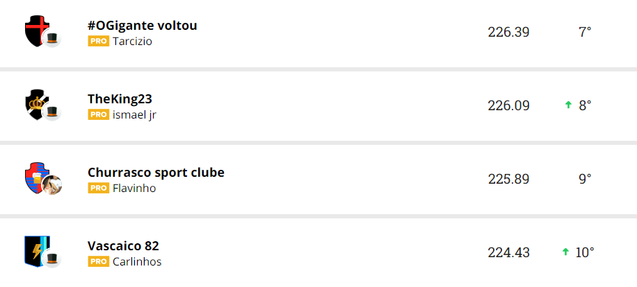 17/04/18 - Cartola FC: Confira a classificação da Liga NETVASCO após a 1ª rodada