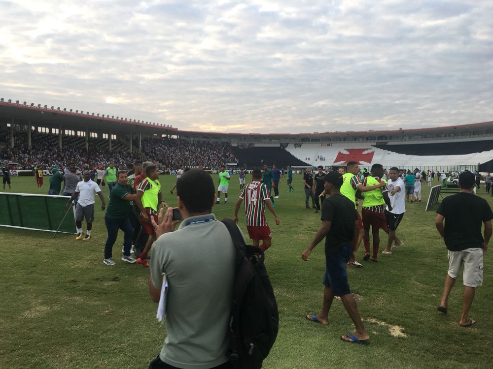 Os jogadores e os torcedores do Vasco, que invadiram o gramado, partiram para cima dos atletas do Fluminense. Os tricolores deixaram o campo por um portão lateral e precisaram passar por dentro do estacionamento para chegar ao vestiário, só recebendo a taça quase meia-hora depois.