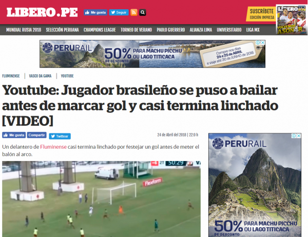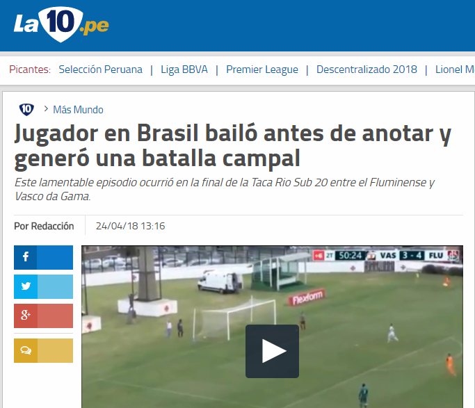 Juniores: Dancinha de jogador do Fluminense, que provocou confusão em São Januário, repercute no exterior