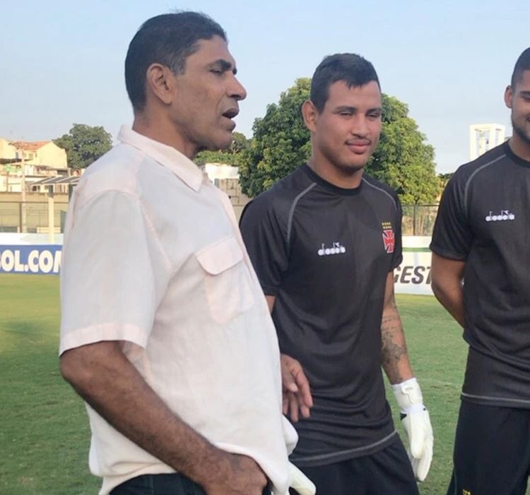 Ídolo vascaíno Acácio visita São Januário e grava reportagem com goleiros do clube