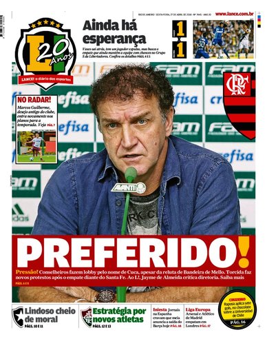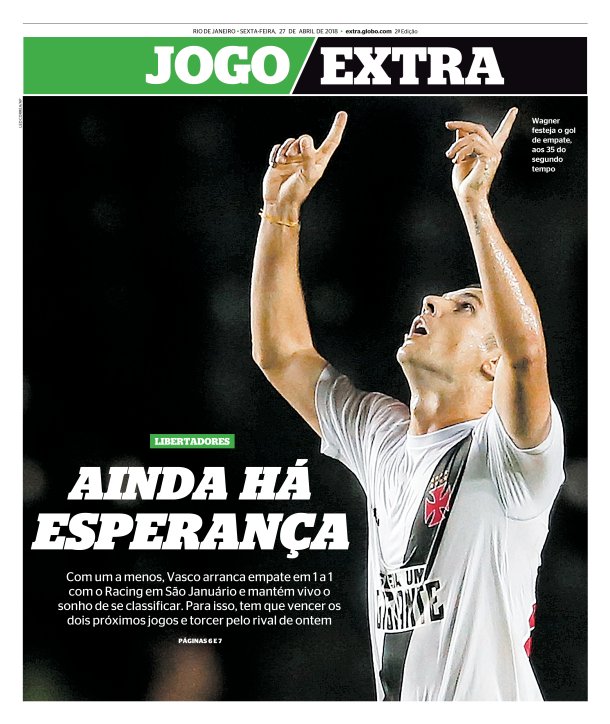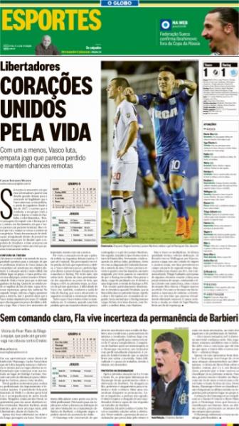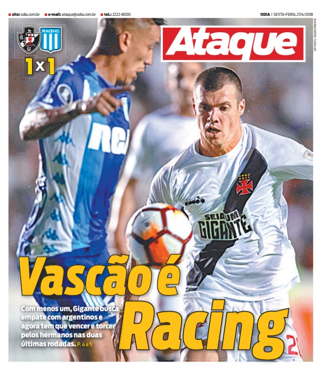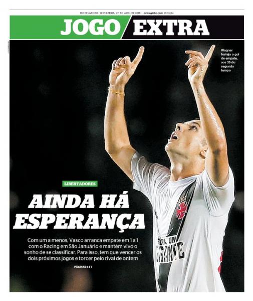 Veja como a imprensa destacou o empate por 1 a 1 entre Vasco e Racing, em São Januário, pela Libertadores da América: