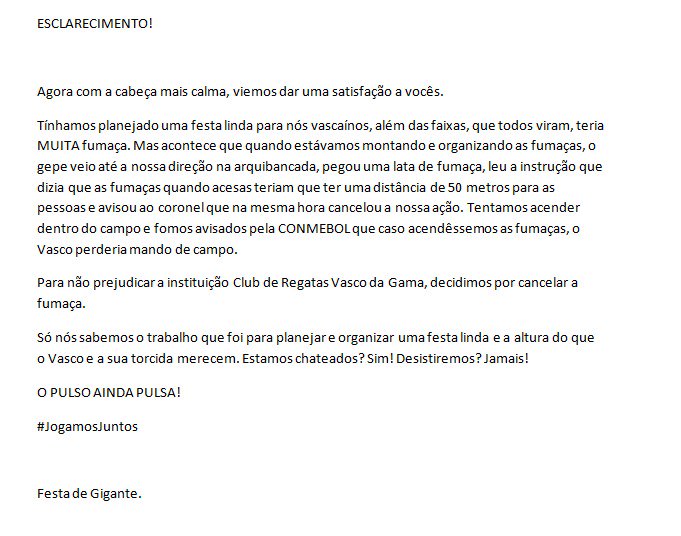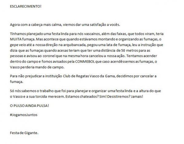 Festa da torcida do Vasco teria muita fumaça (não levem para outro lado), mas o Gepe vetou momentos antes da partida contra o Cruzeiro