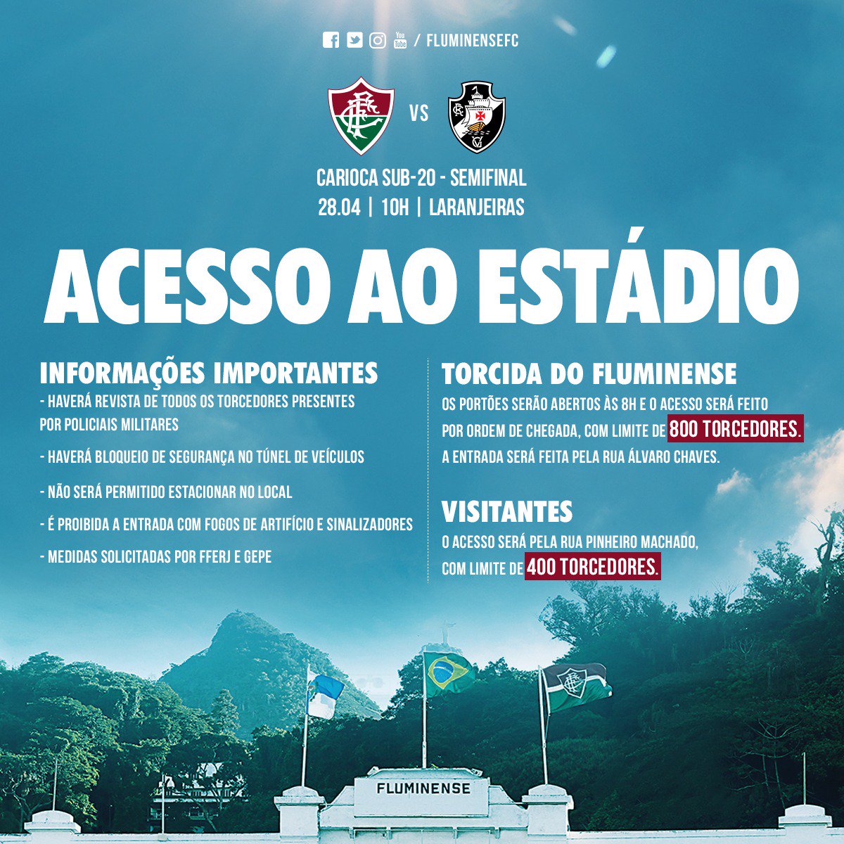 Para quem vai, haverá limitação de torcida, por questões de segurança: serão 800 ingressos para o Flu, e 400 para o Vasco.